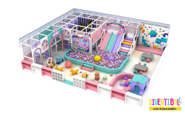 Acest spațiu reprezintă o soluție completă pentru loc de joacă modular, ideală pentru antreprenorii care investesc în amenajări locuri de joacă sigure și moderne, dezvoltând spații de joacă pentru copii interior atractive, interactive și profitabile.