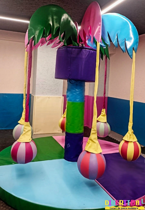 Cocotier Palmier Electric. Acest element pentru un loc de joacă modular sub forma unui palmier electric interactiv este perfect pentru amenajări locuri de joacă moderne și atractive. Cu o înălțime de 2,80m, funcționează la 220V și dispune de 6 posturi de joacă, fiind ideal pentru spații de joacă pentru copii. Designul său captivant încurajează cățărarea și mișcarea, stimulând coordonarea și echilibrul celor mici. Produsul este nou și disponibil pentru livrare imediată din stoc, fiind o soluție eficientă și rapidă pentru centrele de joacă sau grădinițele care doresc o atracție sigură și interactivă.
