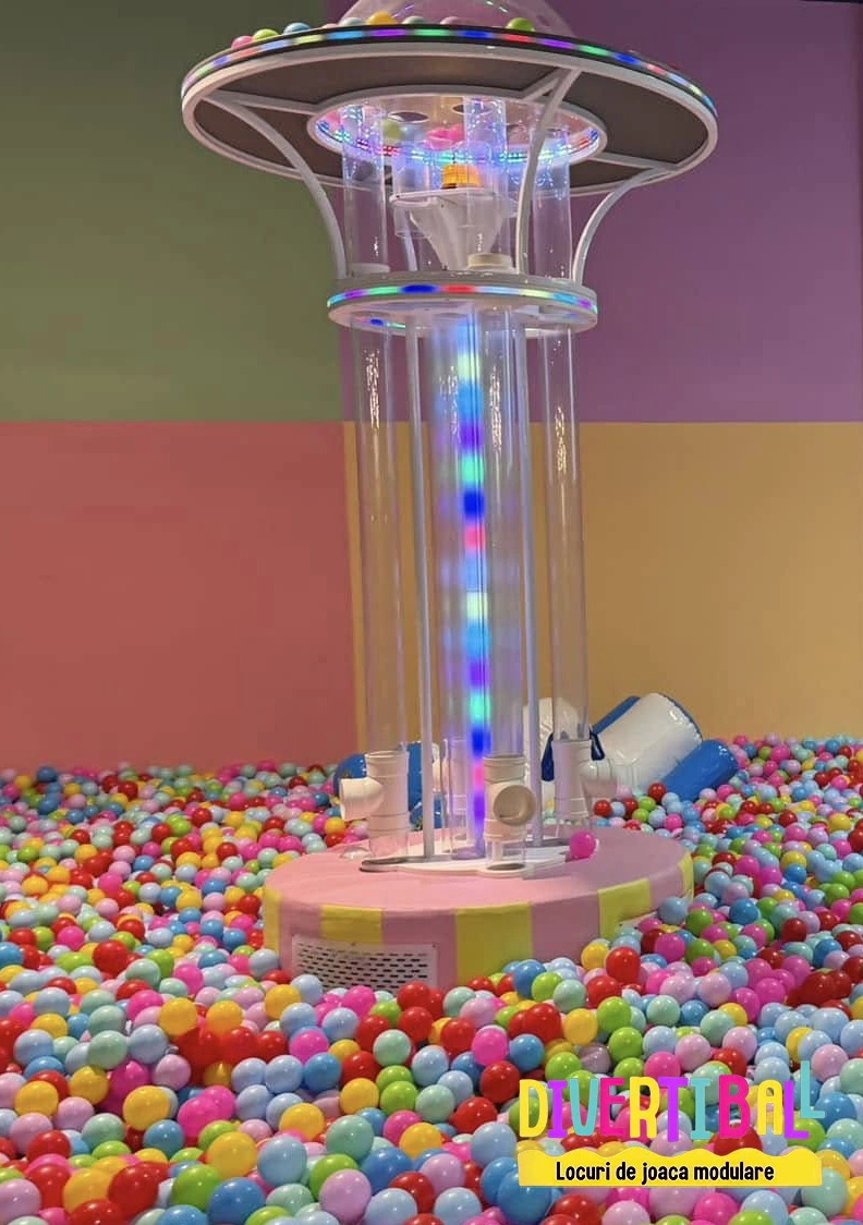 Echipament spectaculos de tip soft play, cu efect vizual dinamic, ce atrage copiii prin mișcarea continuă a bilelor. Ideal ca punct central într-un loc de joacă de interior.