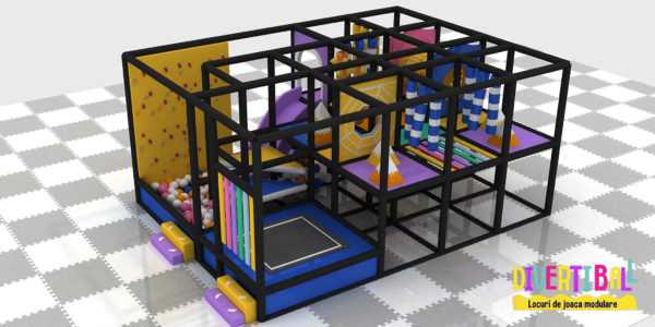 Designul său compact și sigur transformă orice încăpere într-un spațiu de joacă pentru copii interior dinamic și captivant. Cu o structură metalică protejată și podea puzzle pentru confort și siguranță, acest loc de joacă oferă distracție în condiții excelente. Poate fi adaptat ușor în funcție de tematică sau cerințele proiectului, fiind soluția ideală pentru un loc de joacă modular modern.