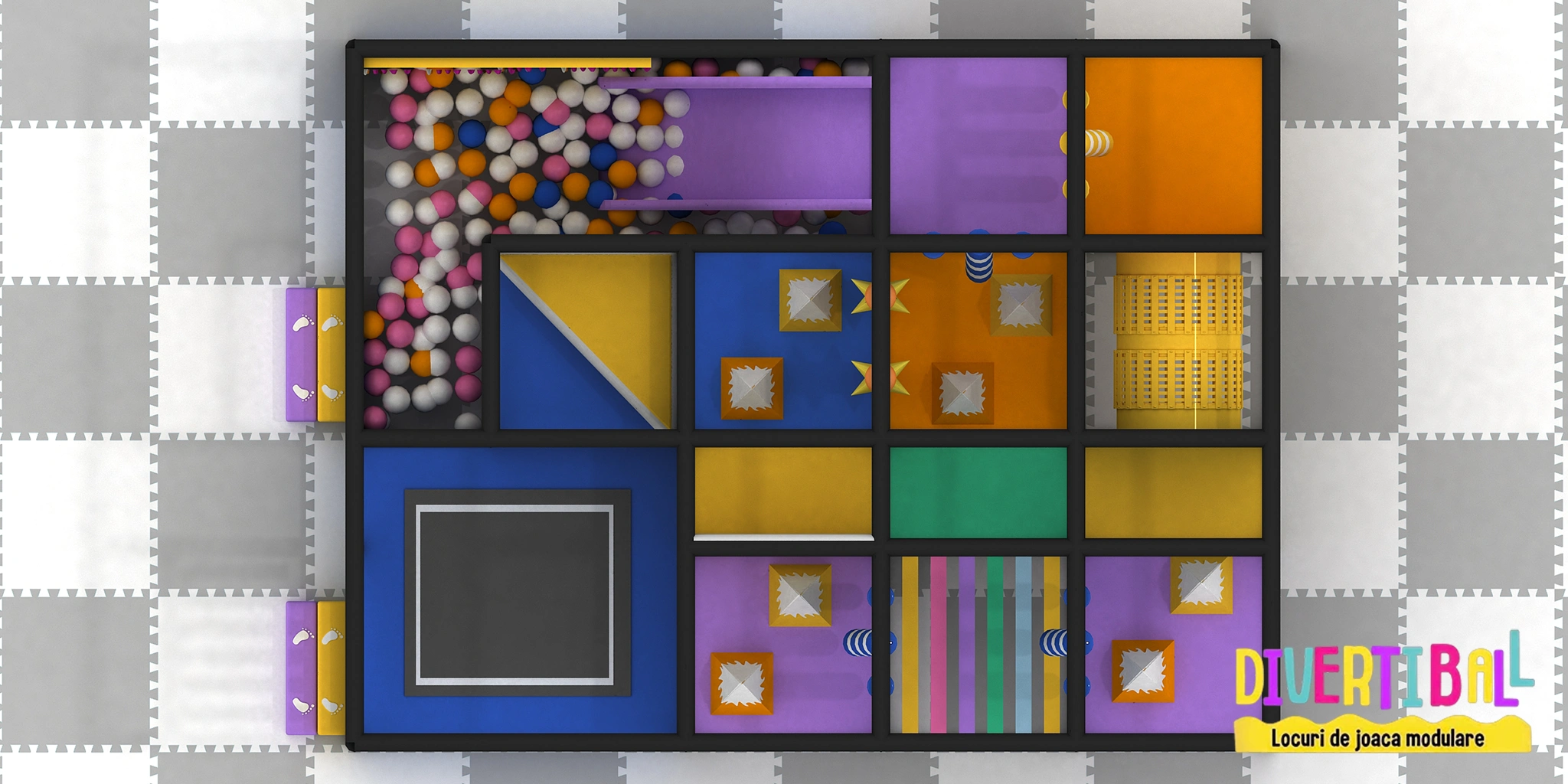 Loc de joacă modular - DB 19 - 6,00m x 4,60m x 2,80m (L*l*h) – DivertiBall