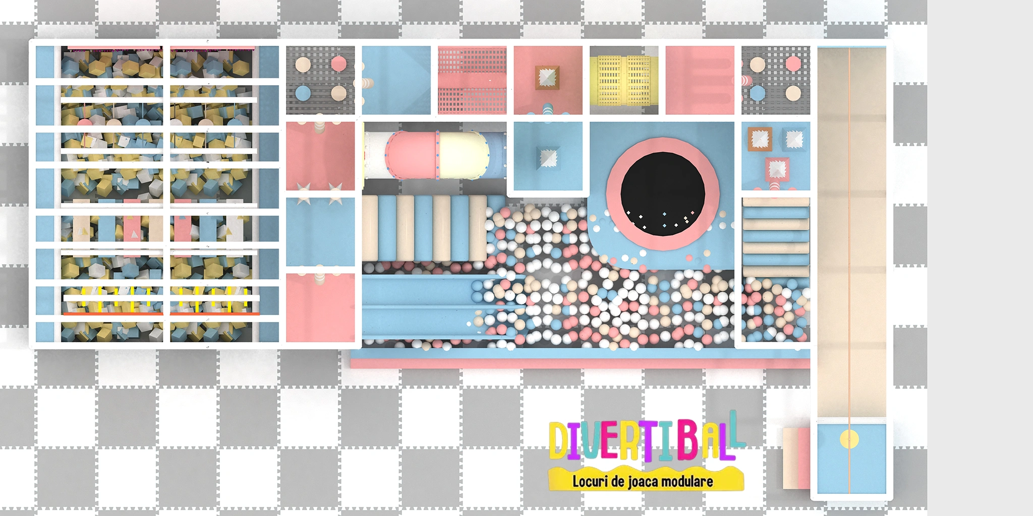 Loc de joacă modular - DB 21 - 13,00m x 5,00m x 2,80m(L*l*h) – DivertiBall