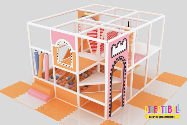 Designul său versatil și modular îl face perfect pentru diverse amenajări locuri de joacă. Materialele sigure și protejate asigură un mediu de joacă prietenos și rezistent, perfect pentru grădinițe, spații comerciale sau zone private. Acest spațiu de joacă pentru copii interior este gândit pentru a stimula distracția activă într-un cadru controlat și sigur, reflectând cele mai bune practici în realizarea unui loc de joacă modular.