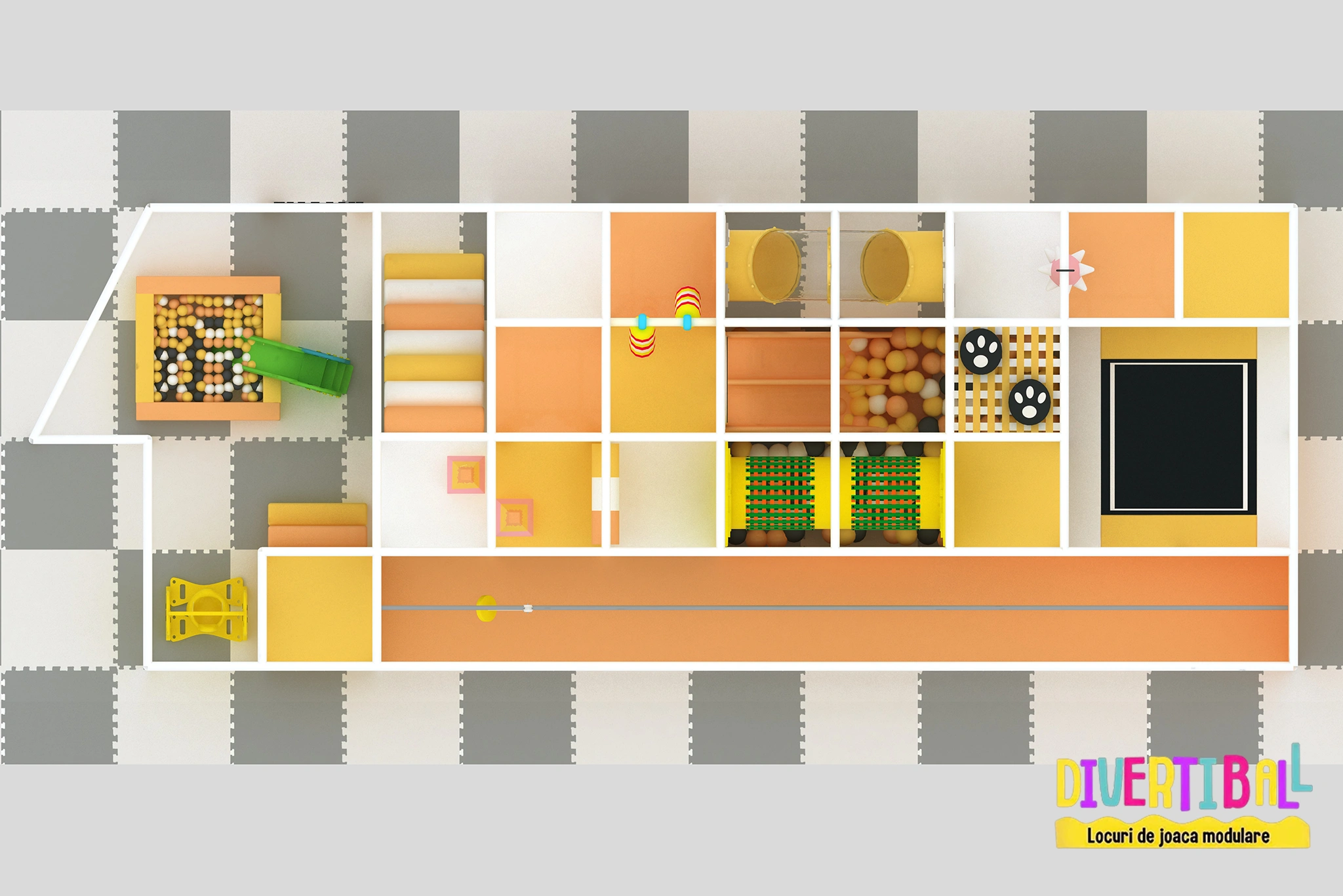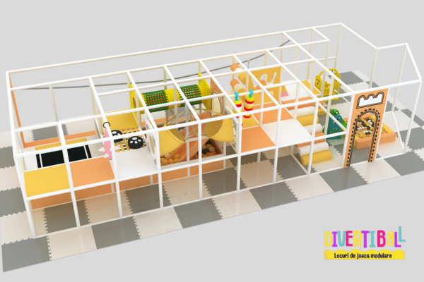 Conceput pentru a stimula mișcarea, imaginația și cooperarea, acest spațiu de joacă pentru copii interior este perfect adaptat nevoilor diferitelor grupe de vârstă, inclusiv o zonă baby (0-3 ani). Designul său modular permite personalizarea completă în funcție de spațiul disponibil, transformându-l într-un loc de joacă modular sigur, versatil și atractiv.