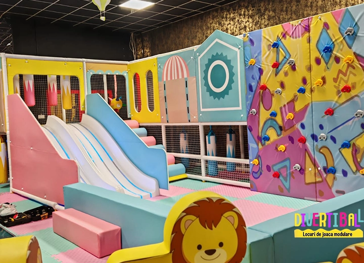 Locul de joacă a fost fabricat și montat de Divertiball, cu respectarea standardelor europene de siguranță și utilizând materiale non-toxice, rezistente și durabile. Structura modulară este protejată cu bureți și plase de siguranță, iar designul permite o experiență dinamică pentru copii de diferite vârste.
